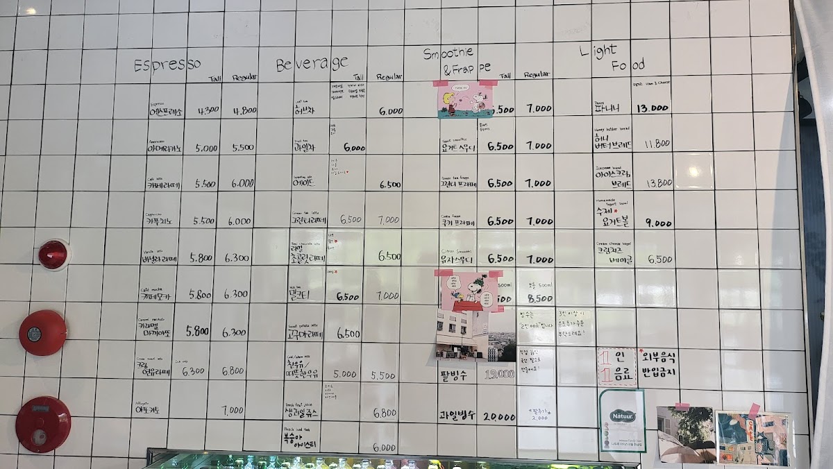 - Coffee Enthusiasts: Dive into their selection of expertly crafted espressos, from the classic Americano to the indulgent Affogato, with prices ranging from ₩4,300 to ₩7,000.